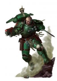 Темные Ангелы – включая даже офицеров Ордена, – предпочитают не украшать свои доспехи, ограничиваясь лишь культовой символикой, крылатыми шлемами, а также плащами и робами темно-бежевого цвета, что служат знаком отличия для ветеранов, сержантов и командиров.